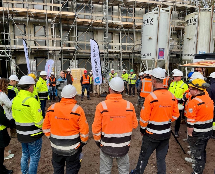 Afgelopen week vierden we samen met onze partners Orangerock, Woningstichting Vechtdal Wonen, Stichting Sprank, Saxenburgh en Goossen Te Pas het bereiken van het hoogste punt van de drie gebouwen in Het Heemse Hof. Een prachtige mijlpaal in dit bijzondere project!