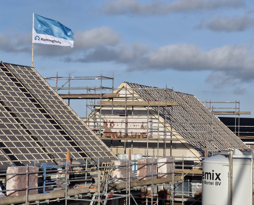 In Winsum, het mooiste dorp van Nederland, is op 5 februari jl. het hoogste punt bereikt van ons prachtige nieuwbouwplan W.est (Winsumernest). Het voormalige terrein van de oude steenfabriek Lombok wordt omgetoverd tot een kleinschalige woonbuurt bestaande uit 28 energie neutrale woningen. Rottinghuis’ Aannemingsbedrijf bv is in opdracht van Loostad in mei 2024 gestart met de bouw.
